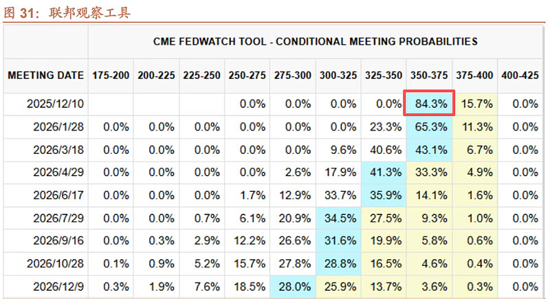 近期美聯(lián)儲(chǔ)官員密集放鴿,美聯(lián)儲(chǔ)12月降息的預(yù)期再度升溫(最新升至80%以上),美元指數(shù)自100附近回落至99,進(jìn)一步強(qiáng)化了人民幣的升值趨勢。