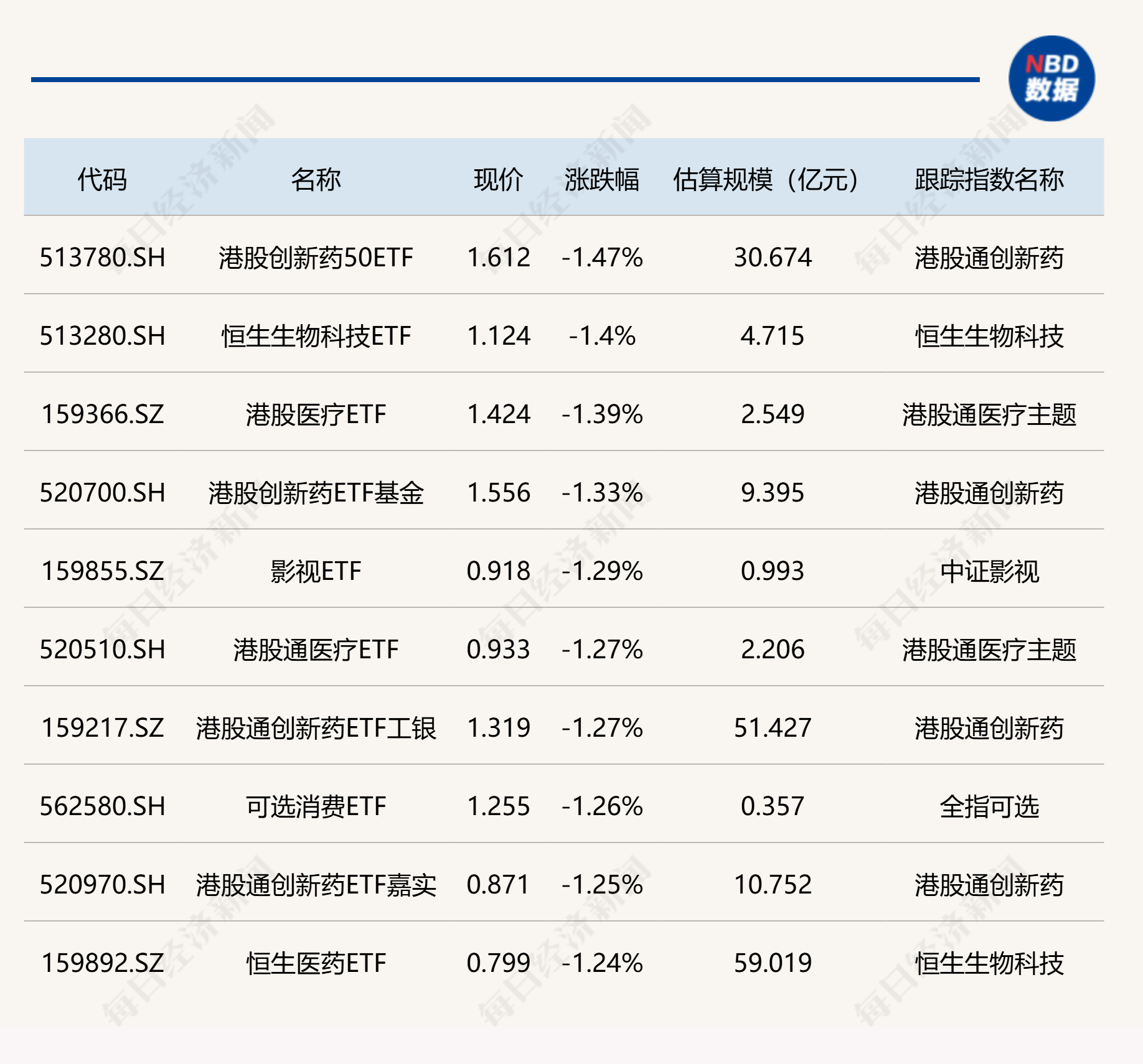 下跌方面,港股創(chuàng)新藥相關(guān)ETF跌幅居前。