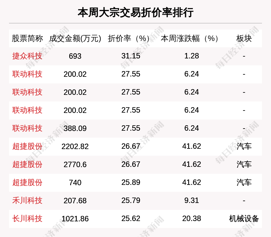 折價(jià)交易方面,本周有536筆大宗交易折價(jià)率超過10%。