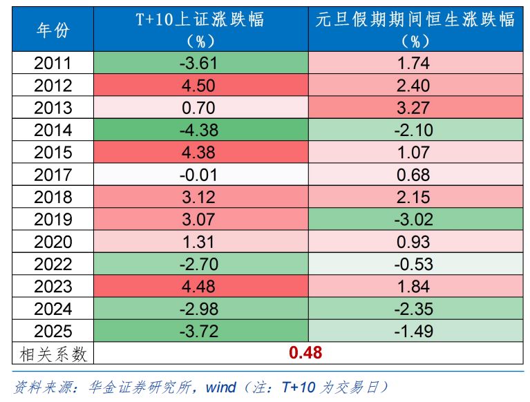 元旦假期港股漲跌幅與T+10內上證漲跌幅相關系數(shù)較高