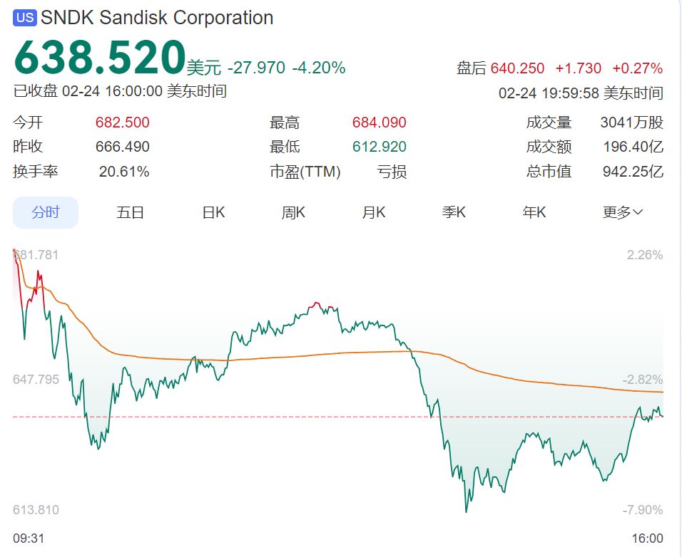帖子發(fā)出后,閃迪(SNDK)股價(jià)周二早盤跳水,午盤之初曾短線轉(zhuǎn)漲,后跌幅再度擴(kuò)大、一度跌近8%,最終收跌4.2%。香櫞發(fā)布做空聲明前,閃迪股價(jià)2026年以來(lái)表現(xiàn)亮眼,股價(jià)累計(jì)漲約175%。