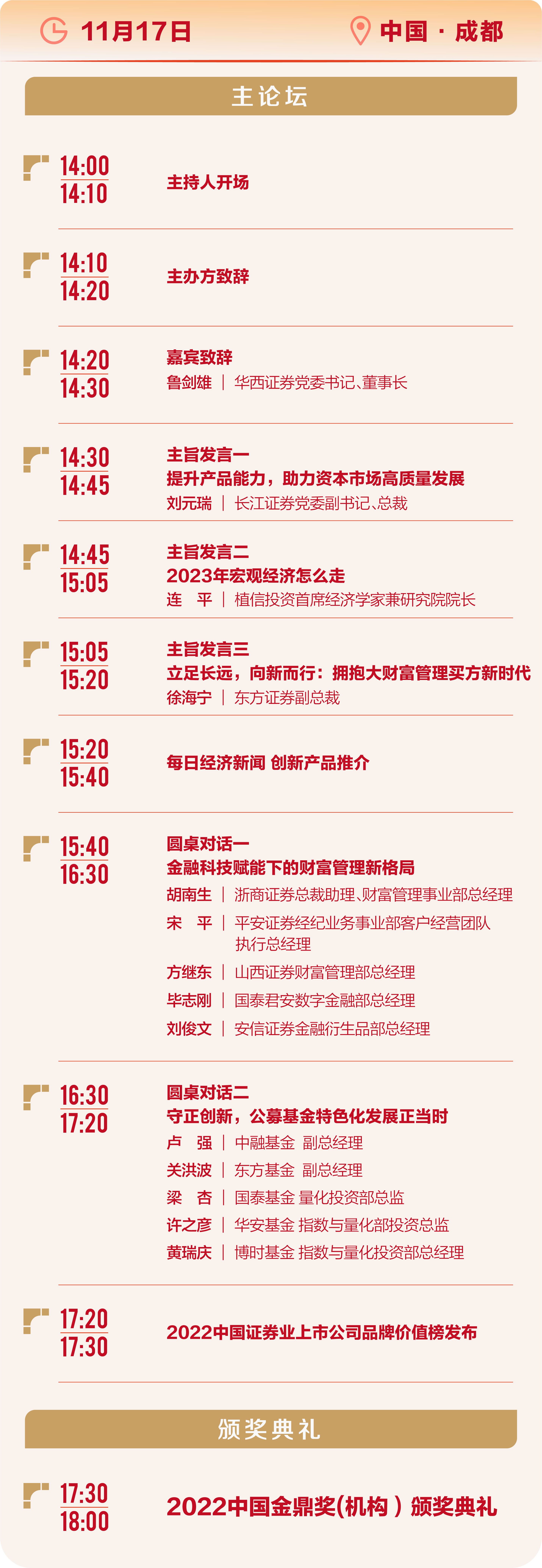 資本市場(chǎng)未來(lái)可期,證券行業(yè)亦任重道遠(yuǎn)。因此,我們將本屆中國(guó)資本市場(chǎng)高質(zhì)量發(fā)展峰會(huì)主題定為:“特色塑造,穩(wěn)中求進(jìn)”。希望聽(tīng)到您對(duì)中國(guó)資本市場(chǎng)未來(lái)發(fā)展的真知灼見(jiàn)。