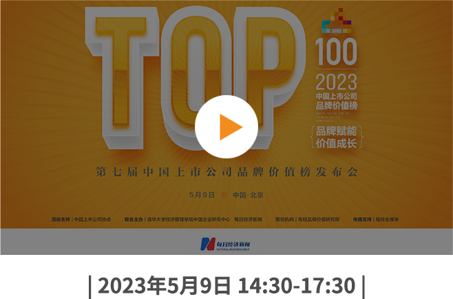 在第七個中國品牌日來臨之際,由每日經濟新聞主辦的“2023第七屆中國上市公司品牌價值榜發(fā)布會”將于第七個中國品牌日前夕——2023年5月9日(周二)下午在北京舉辦。