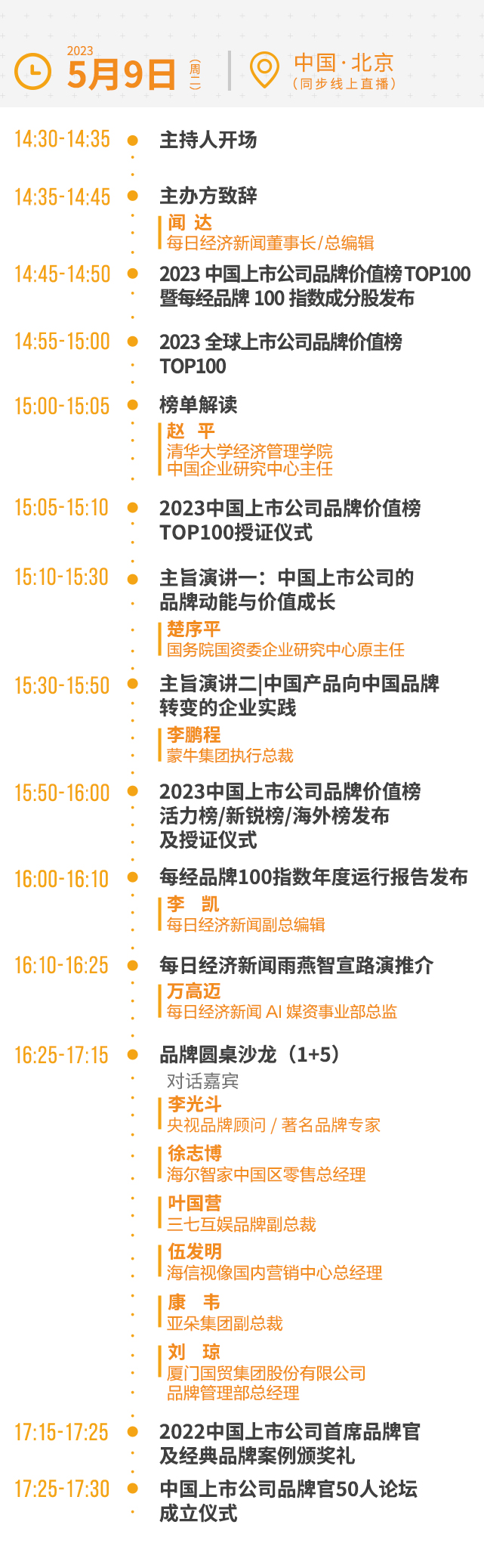 品牌能量推動價值成長,價值成長彰顯品牌能量——這是當下中國上市公司的重要命題。本次論壇將匯聚學界、業(yè)界、投資界大咖,共同探討在中國經濟高質量發(fā)展的新階段,如何繼續(xù)推動中國制造向中國創(chuàng)造轉變,中國速度向中國質量轉變,中國產品向中國品牌轉變。論壇上每日經濟新聞將聯(lián)合清華大學經管學院中國企業(yè)研究中心隆重發(fā)布“2023第七屆中國上市公司品牌價值排行榜”各大榜單,同時發(fā)布“每經品牌100指數(shù)運行報告”,頒發(fā)“2022中國上市公司經典品牌案例及首席品牌官”,舉辦“中國上市公司首席品牌官50人論壇”成立儀式,以期為中國上市公司和中國經濟的品牌建設貢獻力量。
